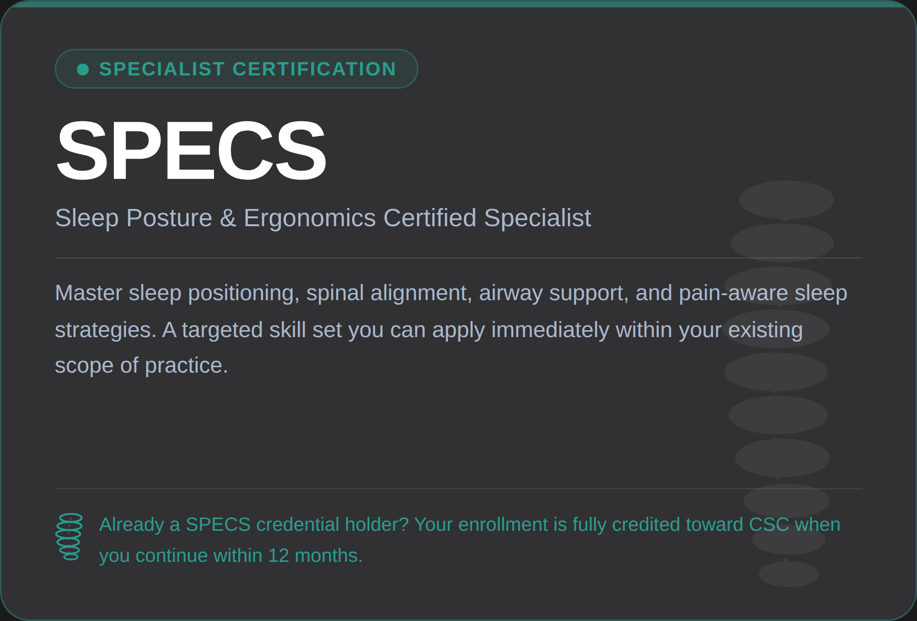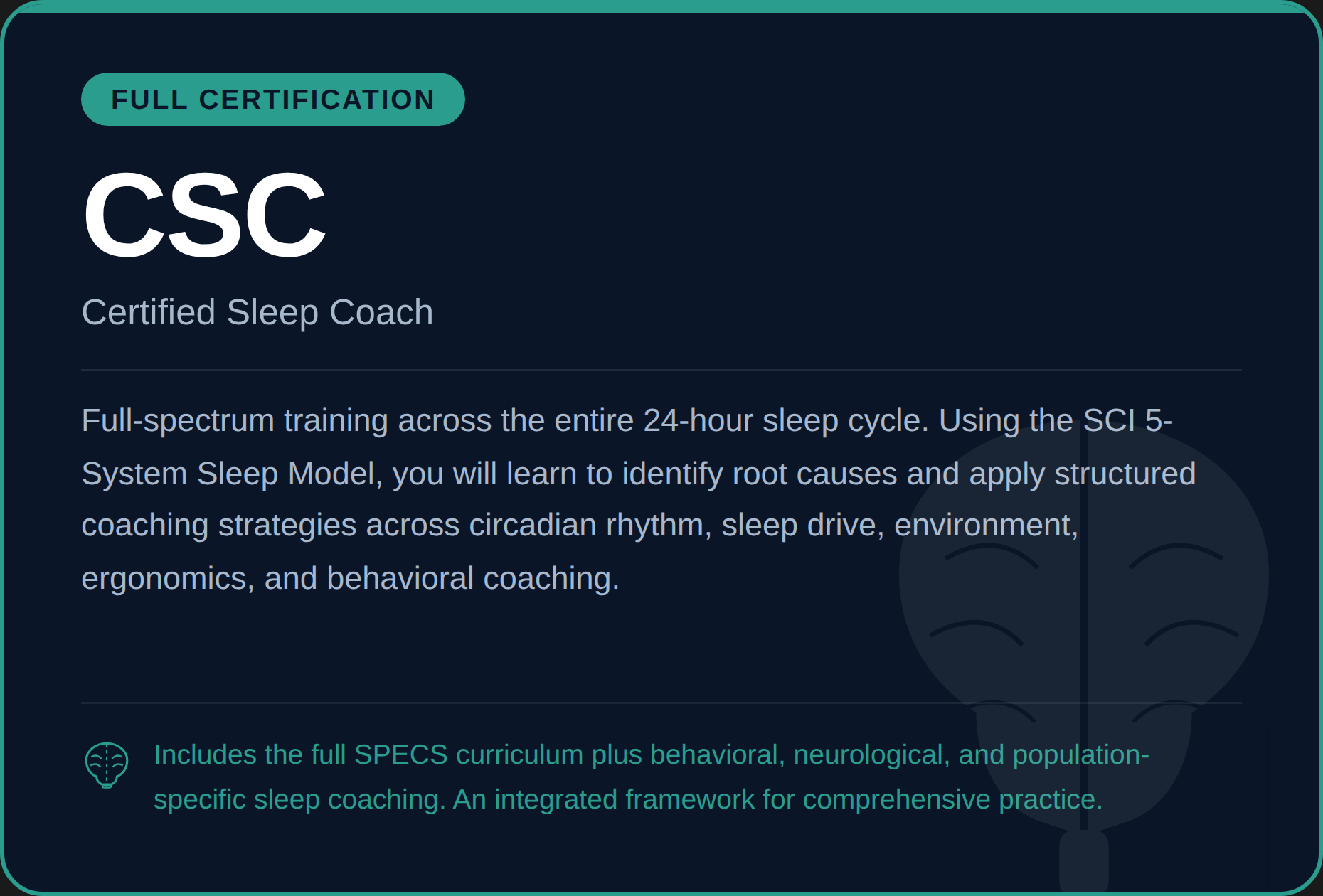 Most certifications mention sleep hygiene as an afterthought. Being the practitioner in your area who is certified in sleep coaching is a genuine competitive advantage and a new revenue stream.